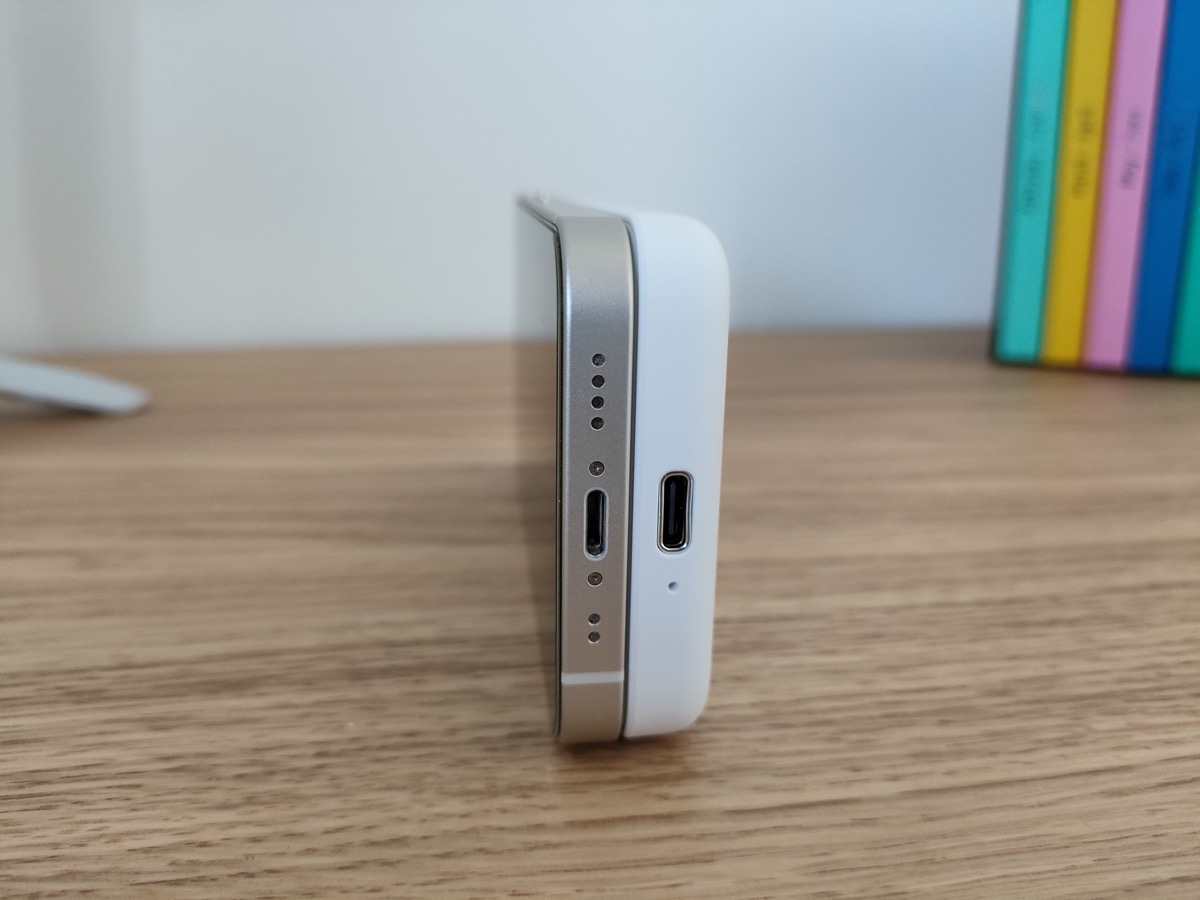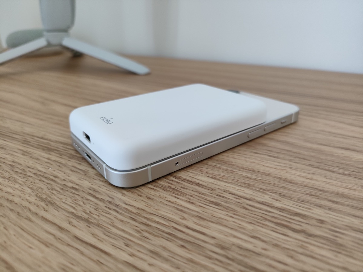 L’attacco magnetico presente sul retro della batteria è molto robusto, e non abbiamo registrato il minimo problema durante l’utilizzo. Lo abbiamo testato con una cover ufficiale Apple MagSafe, con un ottima presa, così come ottima è la presa se utilizzato senza cover. La batteria è compatibile anche con cover Lite Mag, Icon Mag e Sky Mag, tutte cover vendute dalla società e compatibili con lo standard MagSafe.