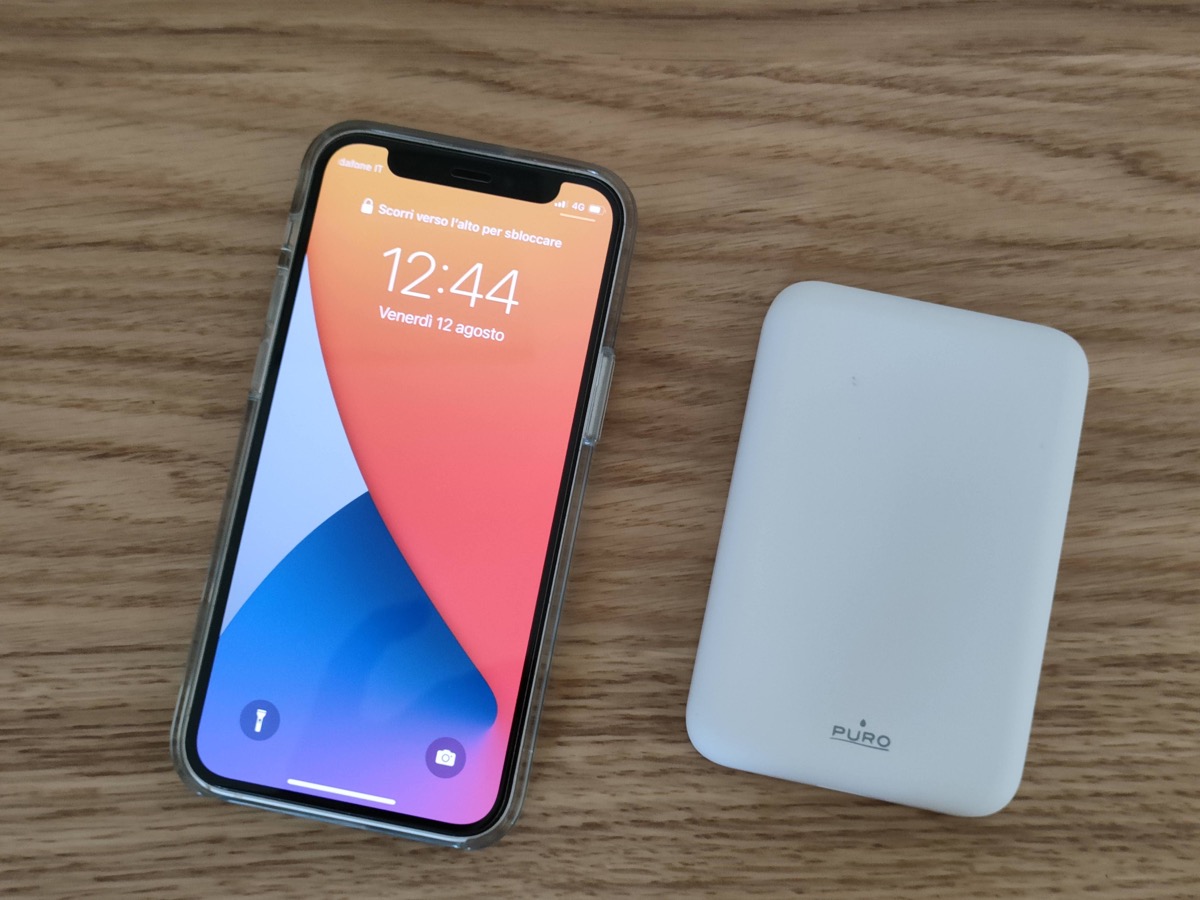A livello di caratteristiche tecniche, PURO Power Bank Wireless presenta al suo interno una batteria con potenza nominale di 4000 mAh, che in teoria dovrebbe offrire almeno il doppio della capacità della batteria di un iPhone 12 o almeno una volta e mezza quella di un iPhone 13. In realtà, come sempre accade quando si tratta di batterie portatili, e ancor di più quando si parla di batterie wireless, la dispersione della potenza nominale in fase di ricarica è piuttosto alta. Su un iPhone 12 mini siamo riusciti a portare la batteria dal 20% all’80% circa, o poco meno.