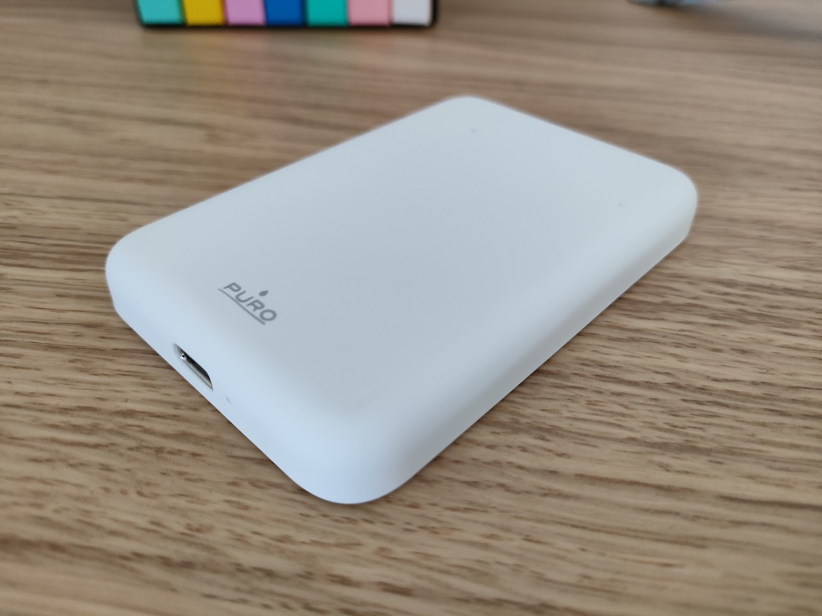 Sebbene estremamente minimale nel design, La batteria PURO in prova risulta essere molto solida, ben assemblata, e restituisce l’idea di un prodotto curato e ben fatto. Anche il rivestimento in gomma restituisce una bella sensazione al tatto. Quanto ai tempi di ricarica, naturalmente, non siamo a livelli record, considerando che la ricarica è sempre limitata a 5W, ma può essere utilizzata con cavo USB-C erogando cosi 3A e 15W. Peraltro, è possibile caricare contemporaneamente iPhone in modalità MagSafe e altro smartphone tramite cavo. In ogni caso, trattandosi di una periferica portatile, che spesso si utilizzerà mentre l’iPhone è in borsa, non ci si accorgerà del tempo che passa.