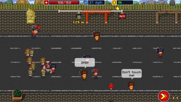 Il gameplay ricorda quello dei giorchi stile “runner” come Temple Run, infatti non c’è una fine vera e propria del gioco perchè bisogna correre, o meglio, rincorrere il più a lungo possibile infettando il maggior numero di umani possibili per battere il proprio record precedente. Tuttavia, oltre agli ostacoli e ai pericoli che si incontrano lungo la strada, bisogna prestare anche attenzione alla vita del proprio zombi, che con il passare del tempo si riduce sempre più. Per questo è fondamentale raccogliere lungo la corsa senza fine i vari power-up, che oltre a conferire poteri straordinari al proprio personaggio, rigenerano il livello della vita.