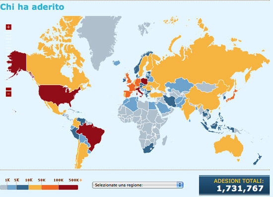 Tra i paesi che contano il maggior numero di sostenitori troviamo gli stati Uniti, il Brasile, ma anche l’Italia e la Polonia. Questo è quello che emerge dalla rappresentazione del globo disponibile nella pagina del Download Day, che evidenzia con colori diversi i Paesi a seconda del numero di partecipanti.