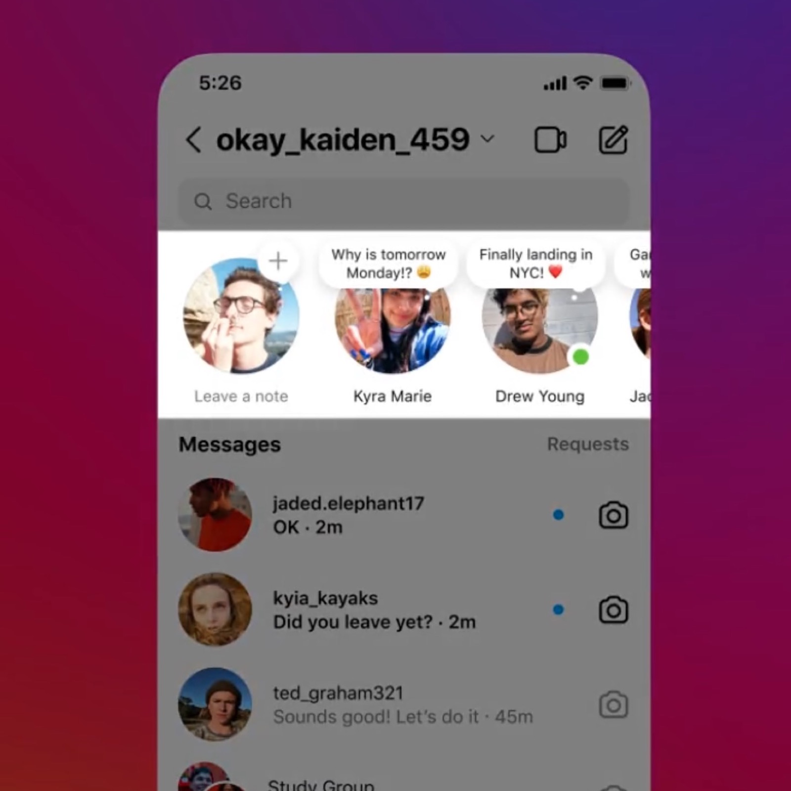 Stiamo iniziando a implementare Instagram Note, un nuovo modo per condividere i tuoi pensieri e vedere cosa stanno facendo i tuoi amici. Sono brevi post di massimo 60 caratteri che utilizzano solo testo ed emoji.