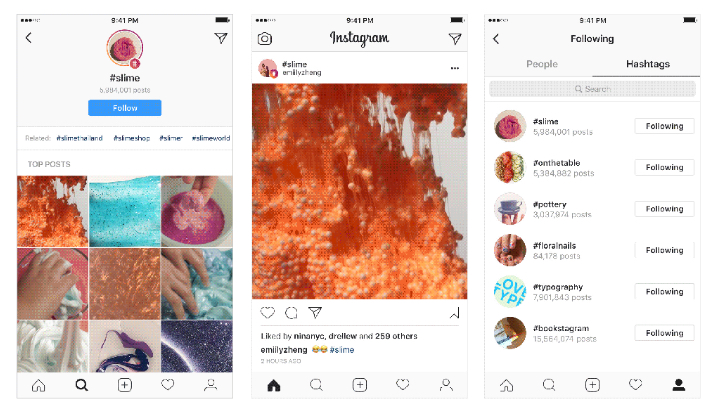 Instagram dice che seguire un hashtag è come seguire un amico: sotto uno stesso hashtag appariranno tutte le immagini che saranno taggate con quello specifico hastag. Inoltre, invece di fare clic su un tag casuale in un post o cercare un argomento, i primi post degli hashtag che gli utenti seguono inizieranno a essere visualizzati direttamente nel feed.
