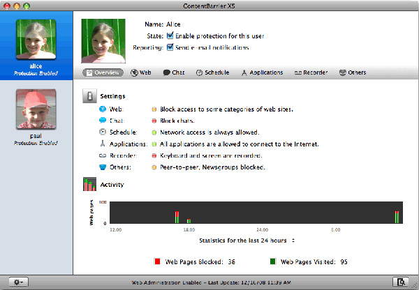 ContentBarrier X5 Dual Protection è un unico pacchetto che offre le funzioni di parental control e sicurezza per i minori al computer, per tutti i sistemi Mac in cui funziona anche un sistema operativo Windows tramite BootCamp oppure virtualizzato. Per il sistema della Mela la protezione è garantita da ContentBarrier X5 un software di nuova generazione che permette di configurare e personalizzare l’utilizzo del Web, dei programmi installati e del Mac a seconda dell’età  del minorenne. Il software è in grado di monitorare tutto quelle che avviene al computer, registrando le digitazioni su tastiera e catturando schermate del Mac a intervalli personalizzabili dall’amministratore, per poi inviare report via email. ContentBarrier X5 permette inoltre di accedere alle impostazioni e modificare le restrizioni da qualsiasi computer collegato al Web. Ricordiamo che Macitynet ha recensito Intego ContentBarrier X5 in questo articolo.