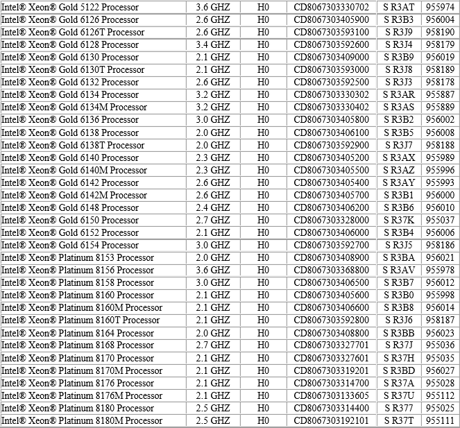 Intel dovrebbe rilasciare ben 34 diversi modelli. La serie Xeon Gold sarà composta da 20 processori delle serie 5000 e 6000; le CPU della serie Xeon Platinum saranno 14, tutte appartenenti alla serie 8000. I processori con la sigla “T” integrano specifiche funzionalità per il risparmio energetico. Novità assoluta sono gli Xeon “M”; il suffisso “M” finora era stato usato solo sul versante mobile ma ora potrebbe essere un riferimento alla DRAM 3D chiamata MCDRAM e sfruttata negli Xeon Phi. Considerando il ciclo di vita dei processori Intel Xeon, solitamente più lungo degli altri processori, uno dei nuovi modelli sarà molto probabilmente impiegato da Apple per il nuovo Mac Pro che dovrebbe essere annunciato nel 2018 o successivamente.