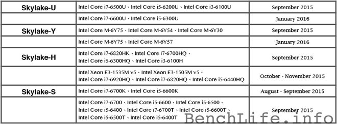 Intel avrebbe in mente il mese di agosto come mese di uscita target per l’architettura Skylake. Lo rivela un presunto documento di Intel pubblicato dal blog cinese BenchLife. Il lancio ufficiale partirebbe con Skylake-S inclusa la versione di riferimento per desktop Core i7 6700K, seguiti poi dai Skylake-U, -Y, e -H a settembre e altre versioni nei mesi successivi, fino ad arrivare a gennaio 2016.