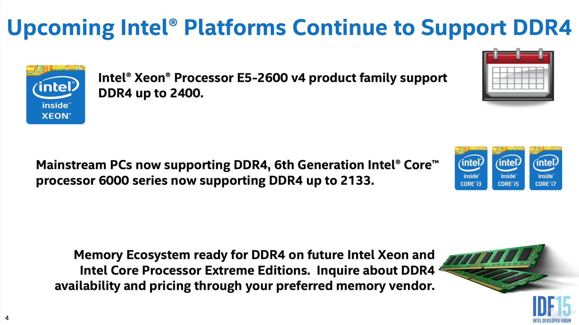 Stando a quanto riporta il tedesco ComputerBase.de, il nuovo Xeon E5 v4 sarà disponibile prima della fine dell’anno e si tratterà della prima CPU per server ad avere più di 4 core e a sfruttare il procedimento costruttivo a 14nm. La nuova CPU aggiornata per le piattaforme Grantley e Brickland sarebbe in fase di test presso vari clienti Intel ed è probabile che con lo Xeon E5 v4 “Broadwell-EP” arriverà entro la fine dell’anno o all’inizio del 2016 anche lo Xeon E7 v4 “Broadwell-EX”.