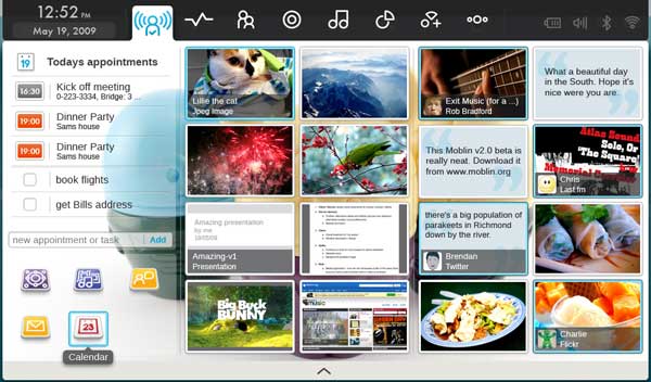 Intel e i programmatori del mondo Open Source hanno integrato una interfaccia unica per la gestione di tutte le informazioni e i programmi per il social network, in cui risultano direttamente accessibili anche i dati dei calendari, dei contatti, degli appuntamenti e anche i file recenti utilizzati. Una soluzione unica e accentrata è stata realizzata anche per i file multimediali, tutti accessibili da un unico media player. Il browser di navigazione Web è basto sul motore Mozilla e permette di visualizzare anche i contenuti avanzati come i filmati Flash e la gestione dei plug-in Flash. In definitiva il progetto Moblin offre agli utenti una alternativa a Windows XP, ancora oggi il sistema operativo proposto da Microsoft per i sistemi compatti ed economici. Come concorrente gratuito e Open Source il successo di Moblin però dovrà essere misurato nei confronti dell’imminente Windows 7 che offrirà anche una versione alleggerita per netbook.