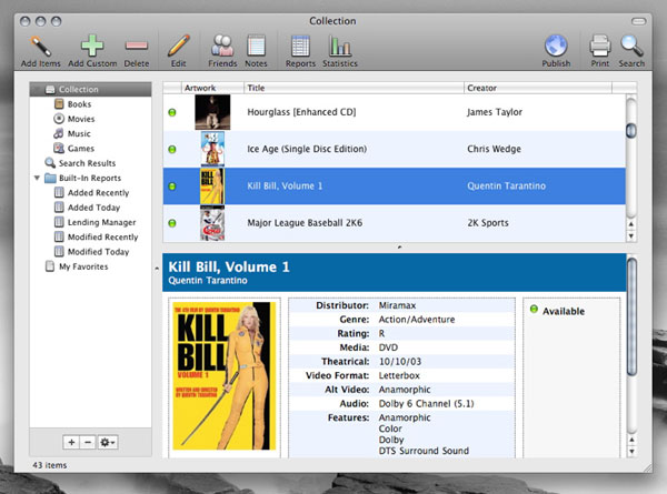 A partire dai codici a barre utilizzati a livello internazionale, il programma abbinato a IntelliScanner cerca per noi titolo, copertine e tutte le altre informazioni più importanti inserendole automaticamente nei campi assegnati del database, basato su SQLite. In sostanza è possibile creare un database perfettamente organizzato e aggiornato con il minimo sforzo da parte dell’utente. Ma non è tutto: è possibile scorrere la nostra raccolta a partire dalle copertine, dai titoli, eseguire ricerche per autore, integrare con giudizi personali, date e nomi per eventuali prestiti.