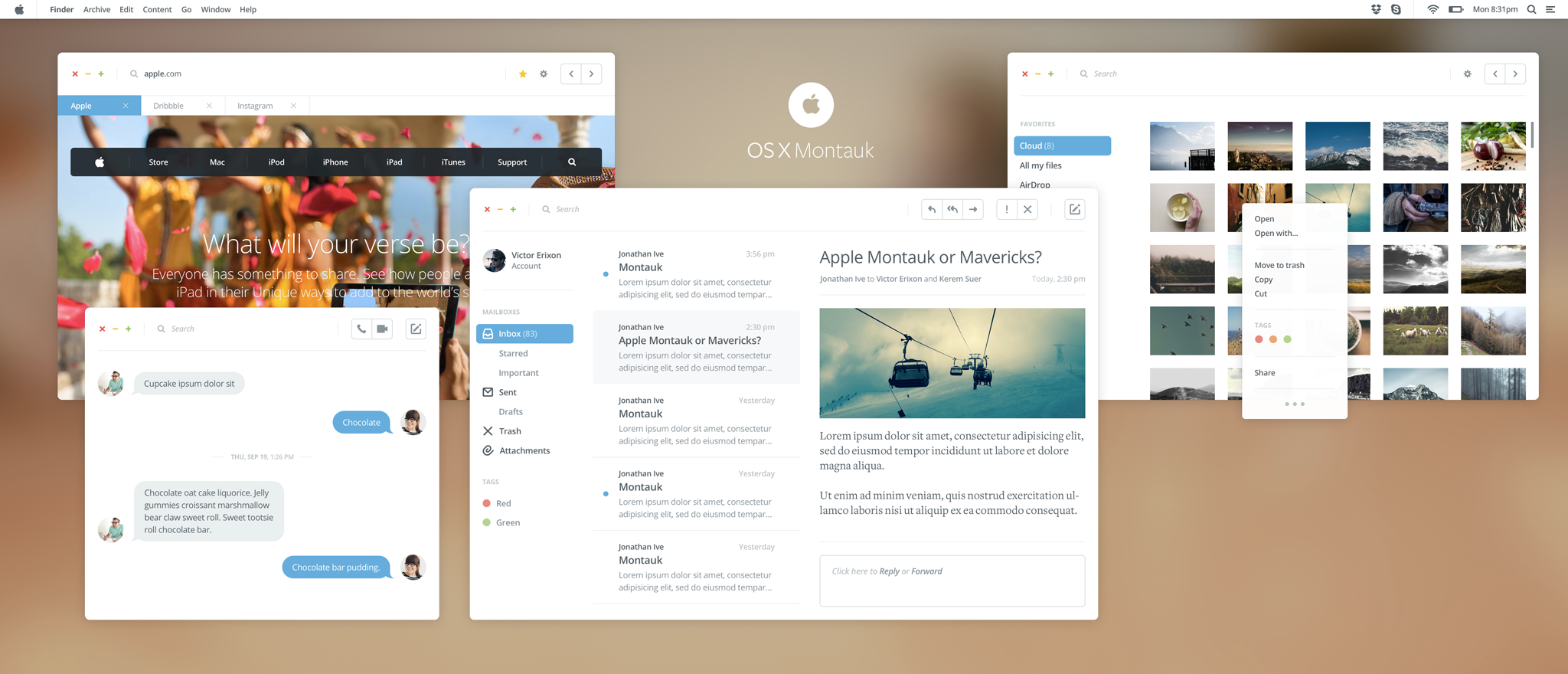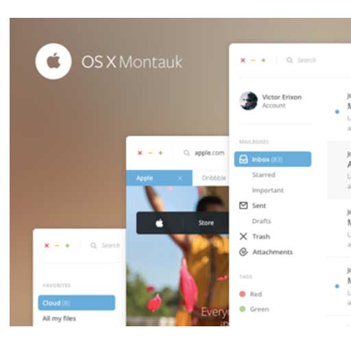 Il lifting pensato da Victor Erixon, parte dal concetto secondo il quale il nuovo sistema operativo prenderà massicciamente spunto dall’operazione che in iOS 7 ha cancellato lo scheuomorfismo ed eliminato totalmente ombre ed effetti 3D. Il risulato è un concept interessante , denominato OS X Montauk. I classici pulsanti di chiusura, ingrandimento, riduzione a icona delle finestre sono stati modificati e altri elementi resi meno invasivi e più minimalisti. Il designer dice di essersi ispirato a iOS 7 e all’app Mailbox.