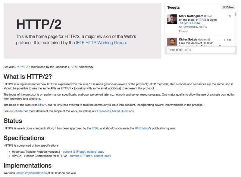 I requisiti sulla sicurezza non sono stati però resi obbligatori nell’attuale versione di HTTP 2 ma la sua adozione, nella maggior parte dei casi, implicherà anche l’attivazione della crittografia. Con il nuovo protocollo è necessario stabilire un collegamento diretto tra il server web e il browser che riceve i dati, in questo modo possono essere saltati i dispositivi intermedi che non supportano HTTP 2. Anche se esistono pressioni contrastanti sul completamento dei lavori, si prevede che il nuovo protocollo HTTP 2 prosegua il suo iter, ora in fase RFC, Request for Comment, come riporta TNW per essere approvato entro la fine di quest’anno.