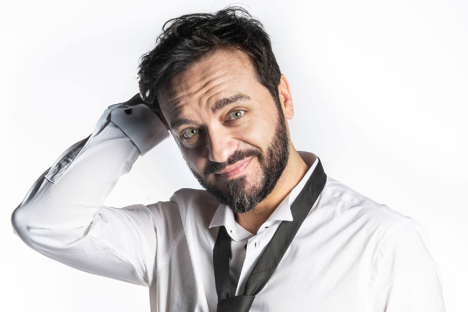 “Ho visto che c’è gente che fa così con le mani ma non ho idea di come funzioni” mentre gli abbiamo fatto raccontare di com’è lo smart working di un attore, davanti ad una telecamera rispetto ad un pubblico live. “Difficile” ammette “perchè abbiamo un bisogno fisiologico di sentire le risate del pubblico”.