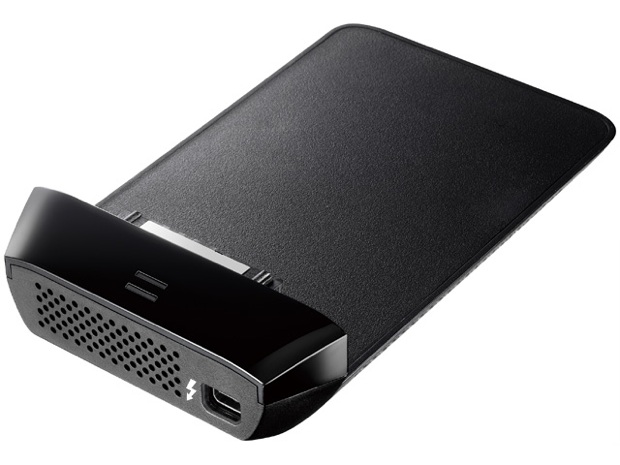 La giapponese I/O Data commercializzerà entro fine mese una mini station portatile e di piccole dimensioni (81 x 130 x 28 mm) con interfaccia USM  Thunderbolt. La base in questione permette di cambiare facilmente e installare un disco a proprio piacimento, essendo l’elettronica di gestione principale integrata direttamente nel dock.