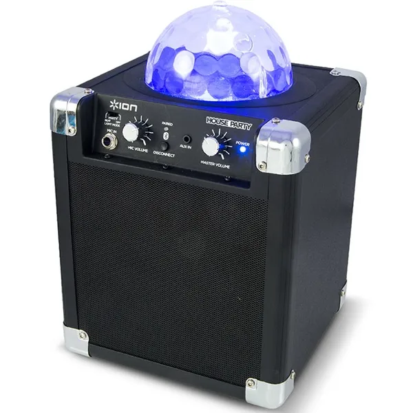 Ancora più potente e versatile ION House Party che integra in un solo dispositivo ben tre funzioni: potente speaker, amplificatore e proiettore di luci. Oltre a riprodurre con un potente sistema audio la nostra musica preferita conservata su computer, smartphone e tablet tramite Bluetooth, questo accessorio funziona anche da amplificatore. E’ possibile collegare dispositivi privi di BT tramite l’ingresso audio jack da 3,5 mm via cavo, e sfruttare ION House Party anche come amplificatore per microfono e strumenti musicali grazie all’ingresso audio jack da 6,35 mm.