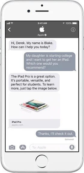Gli utenti possono individuare aziende usando Safari, Mappe, Spotlight e Siri e avviare chat con il servizio clienti dell’azienda di proprio interesse.