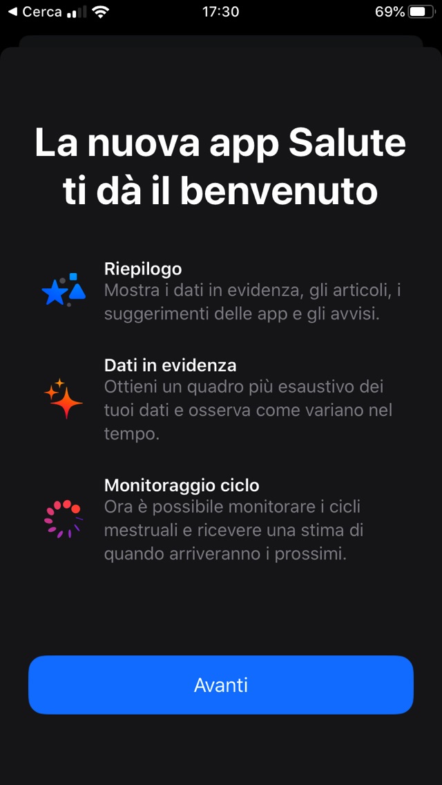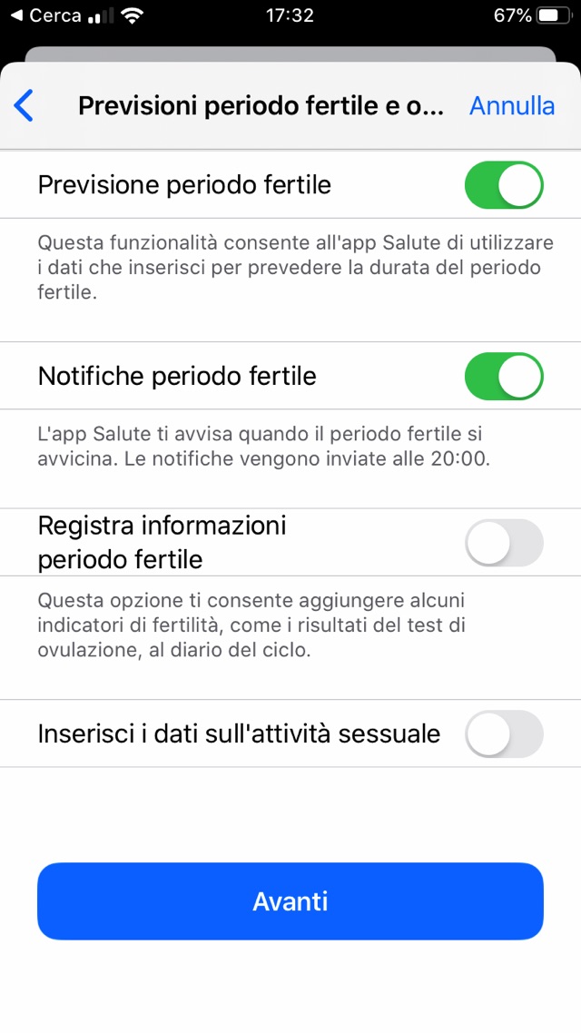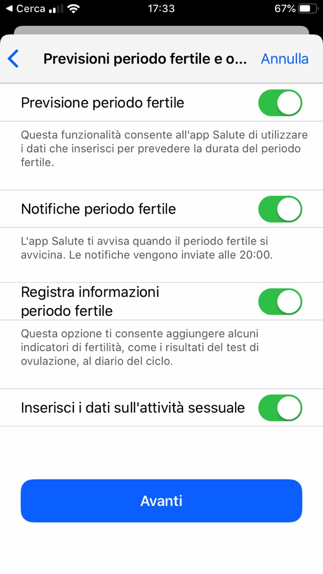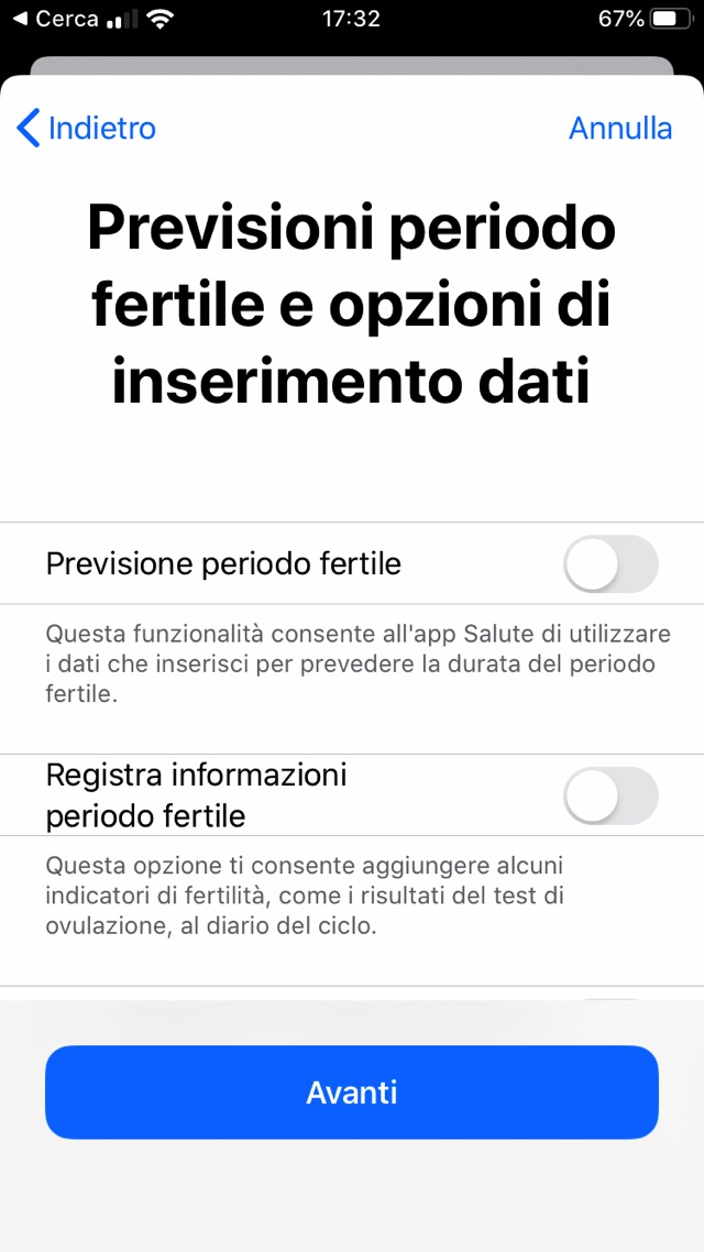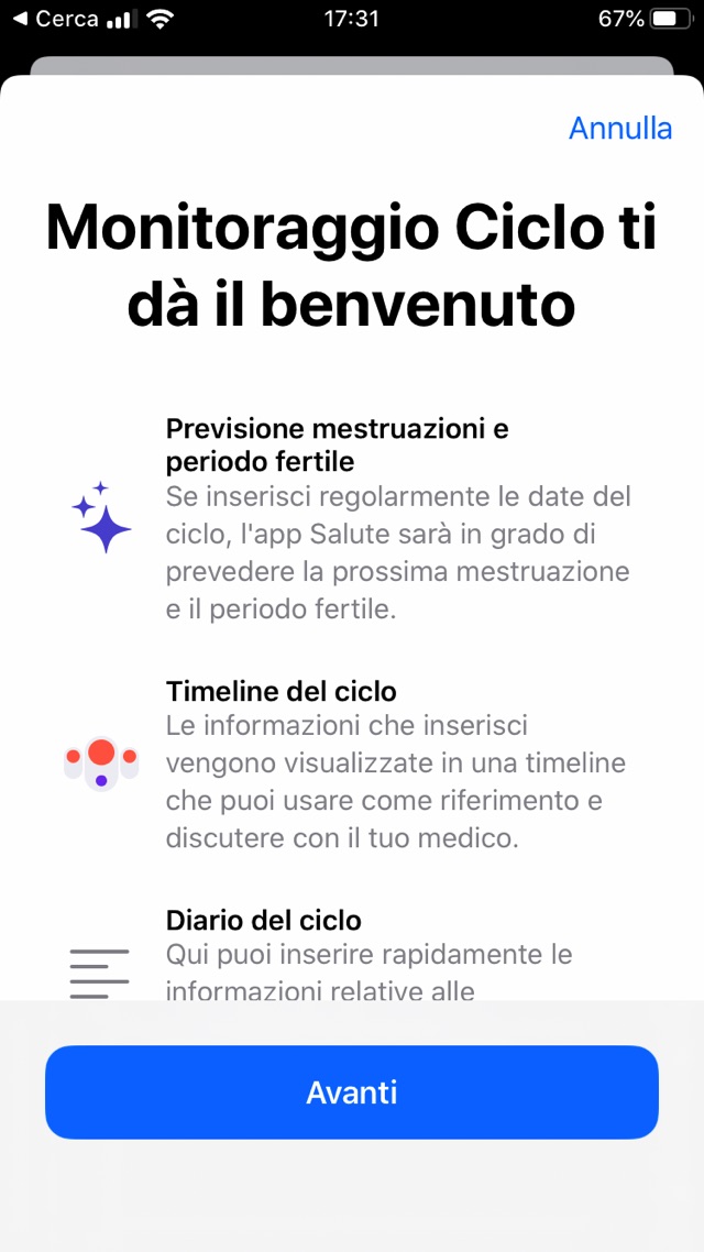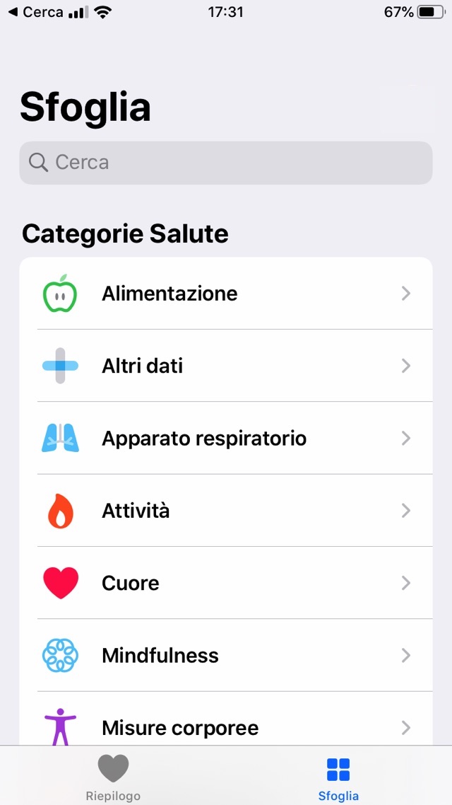 Scegliendo, invece, di sfogliare le diverse categorie dell’app, tra cui – accanto ad Apparato respiratorio, Attività, Cuore e Misure corporee – ora compare anche il Monitoraggio Ciclo.