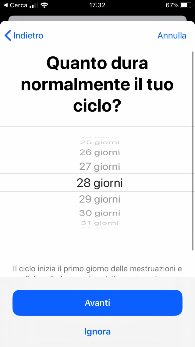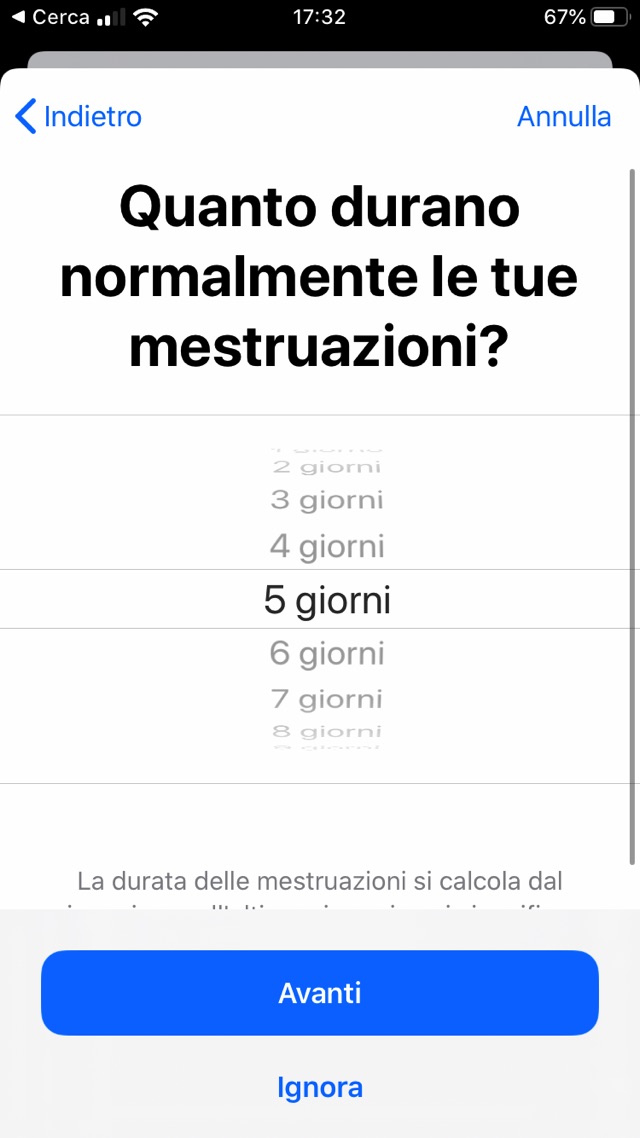 L’app Salute consentirà di prevedere la prossima mestruazione e il periodo fertile inserendo regolarmente le date del ciclo. Tra le domande che l’app Salute porrà all’utente vi è la data di inizio dell’ultimo ciclo, la durata delle mestruazioni (dal primo all’ultimo giorno delle perdite), la durata del ciclo (dal primo giorno delle mestruazioni al giorno prima della mestruazione successiva).