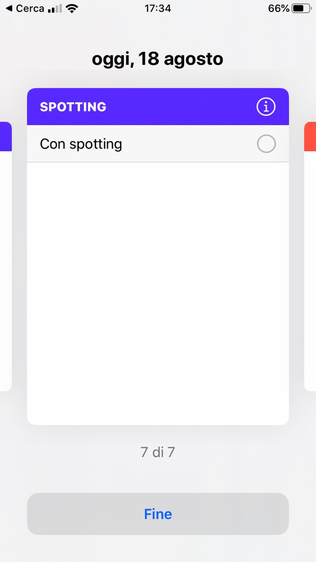 Nella Timeline del ciclo le giornate in cui sono state registrate le mestruazioni saranno contrassegnate in rosso. Un contrassegno più piccolo e viola indicherà le giornate in cui si inseriscono dati relativi a sintomi, attività sessuale, test di ovulazione, qualità del muco cervicale, temperatura basale o spotting.