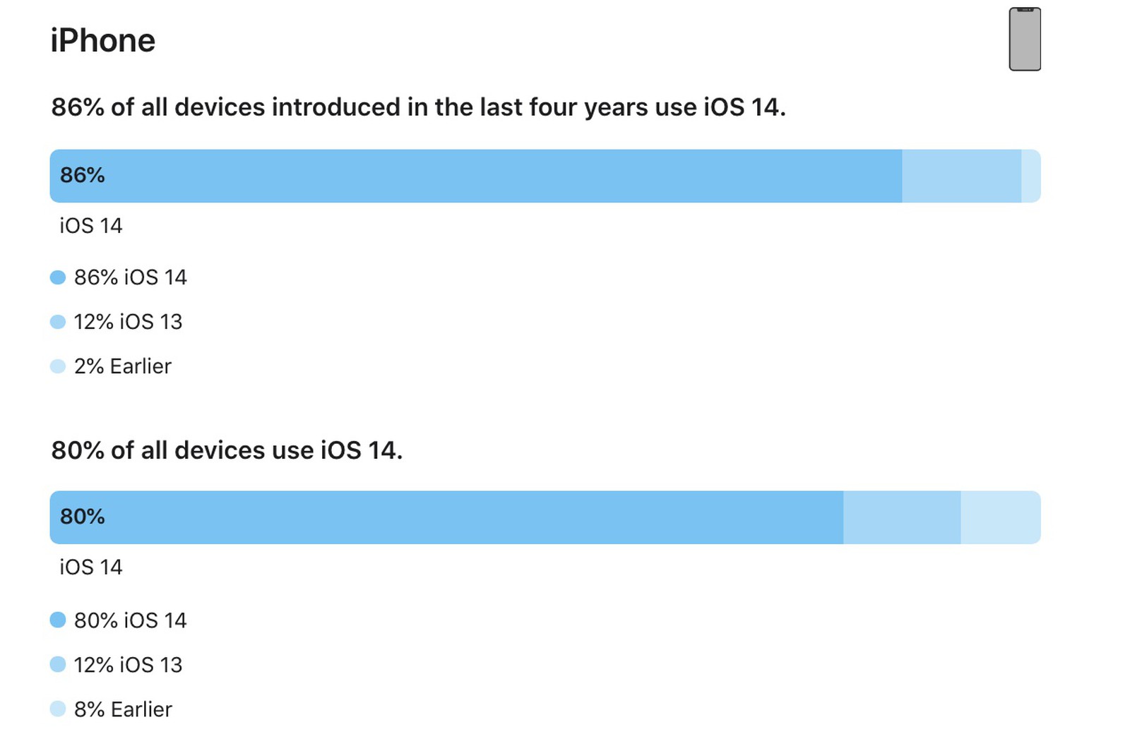 iOS 14 è installato sull’86% degli iPhone degli ultimi quattro anni
