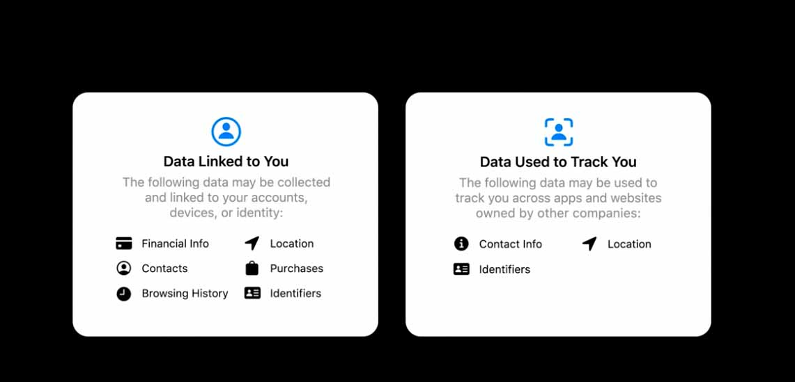 Tutte le app dovranno ora ottenere l’autorizzazione da parte dell’utente prima di avviare il tracking. Più avanti quest’anno, le pagine dei prodotti sull’App Store includeranno un riassunto delle politiche sulla privacy dichiarate dagli sviluppatori, in un formato semplice e intuitivo (tipo “tabella nutrizionale”). Gli utenti potranno inoltre aggiornare il loro account a Sign in with Apple, scegliere di condividere con gli sviluppatori solo la loro posizione approssimativa, anziché quella esatta, e usufruire di una trasparenza superiore circa l’utilizzo di microfono e fotocamera da parte delle app.
