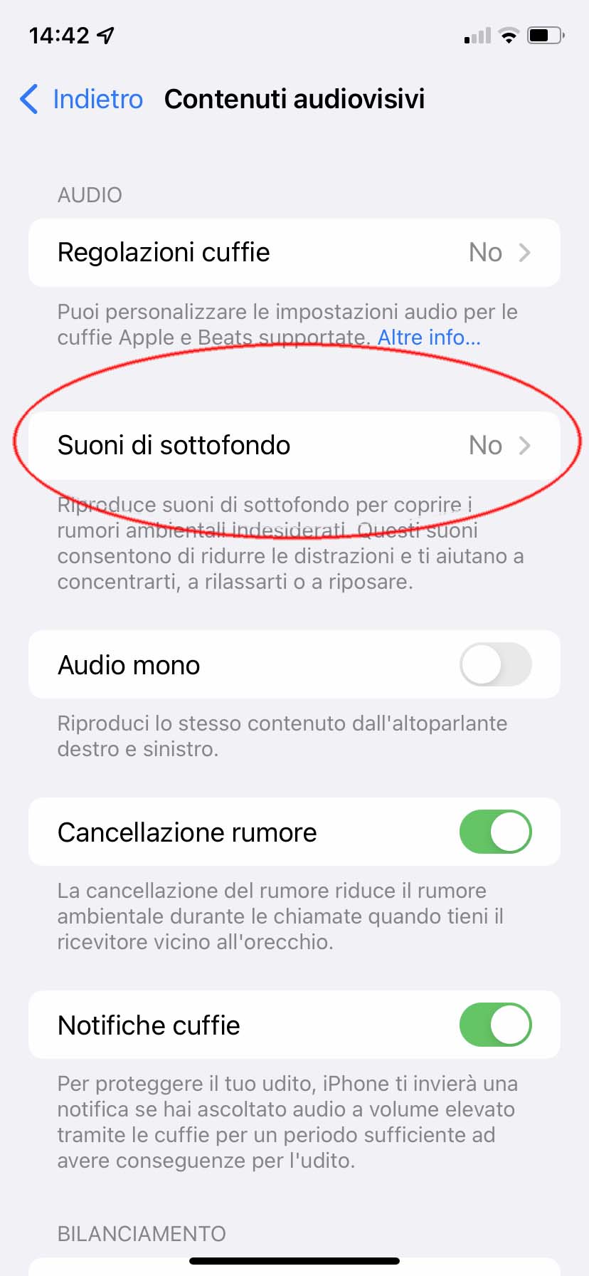 3) Attivate l’opzione “Suoni di sottofondo”