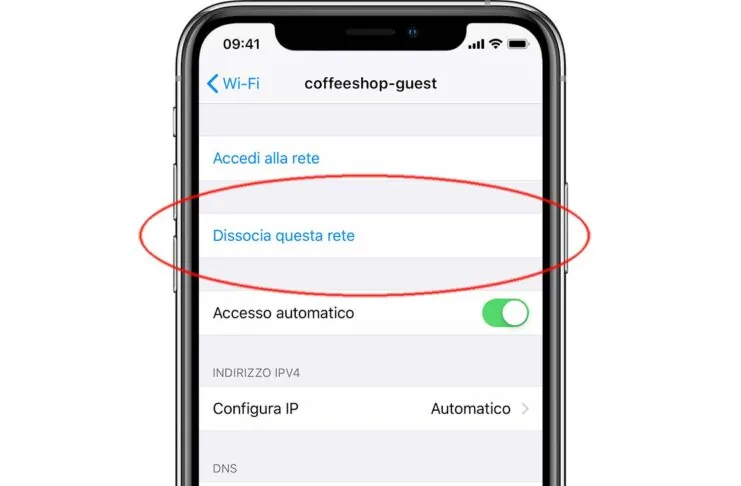 I dispositivi Apple ricordano tutte le reti Wi-Fi a cui hanno effettuato l’accesso sul dispositivo e si connettono automaticamente ogni volta che si trovano nella portata del segnale. Se non vogliamo che si riconnettano a una rete o desideriamo che si connettano con una password diversa, basta dissociare la rete e annullare la memorizzazione della password.