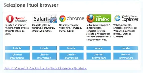 Di seguito i browser che verranno proposti da IOS agli utenti, in base alle nazioni nelle quali si trovano: