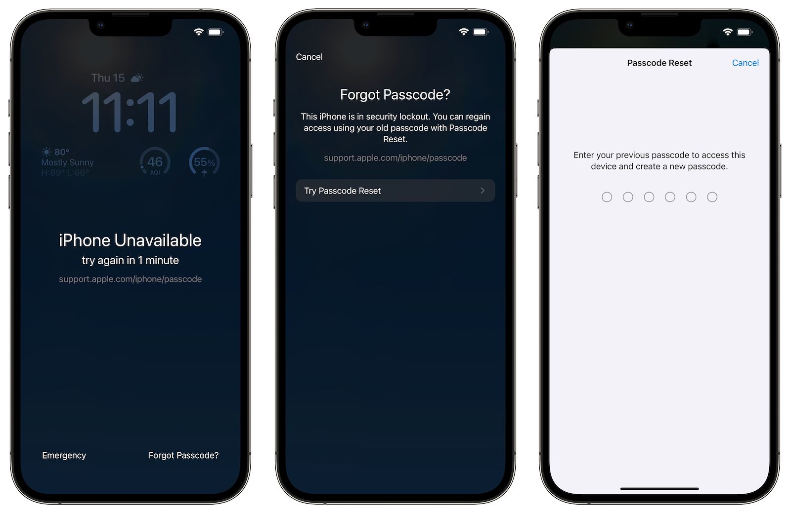 In iOS 17 – riferisce il sito Macrumors – Apple ha implementato un piccolo cambiamento: se si dimentica un nuovo codice impostato per lo sblocco, nella fase di richiesta del nuovo codice è possibile scegliere l’opzione “Password dimenticata” nella parte inferiore dello schermo e da qui passare ad una schermata che permette di resettare l’ultimo codice, indicare il penultimo codice impostato, e creare a questo punto un codice da zero.