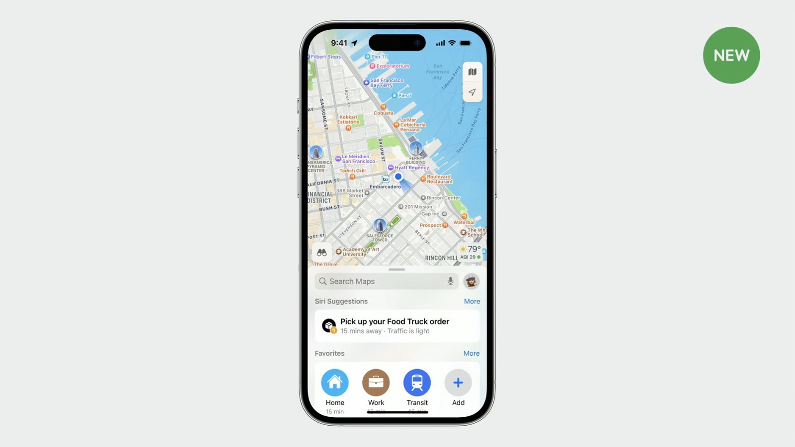 Se l’utente sta seguendo un ordine pagato con Apple Pay, e questo prevede uno specifico orario e/o luogo di ritiro, l’app Mappe può ora offrire indicazioni proattive con i Suggerimenti di Siri.