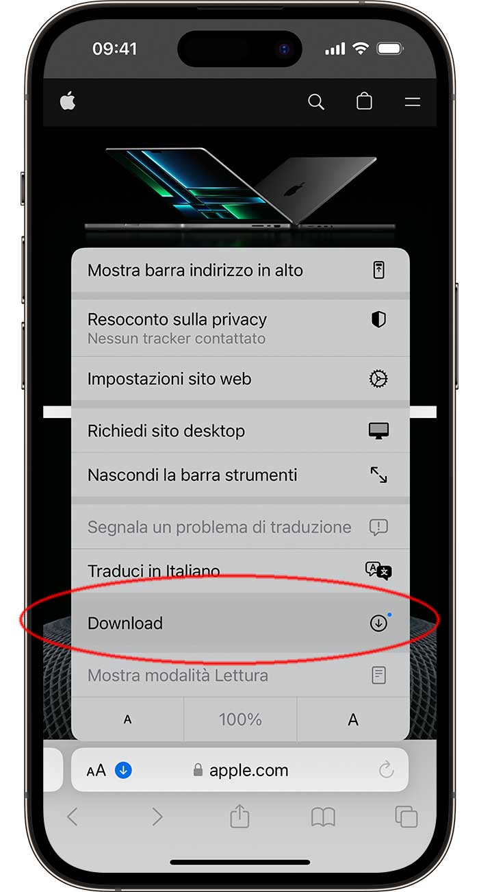 Se abbiamo appena scaricato un file da Safari, vicino al campo di ricerca del browser basta toccare il pulsante Impostazioni pagina e da qui “Download”.