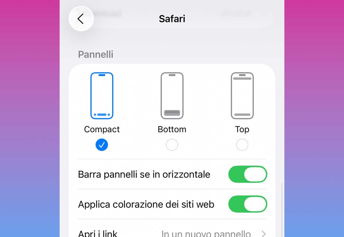 Apple permette di personalizzare il layout della barra dei pannelli di Safari. Basta andare in: Impostazioni > App > Safari > Pannelli