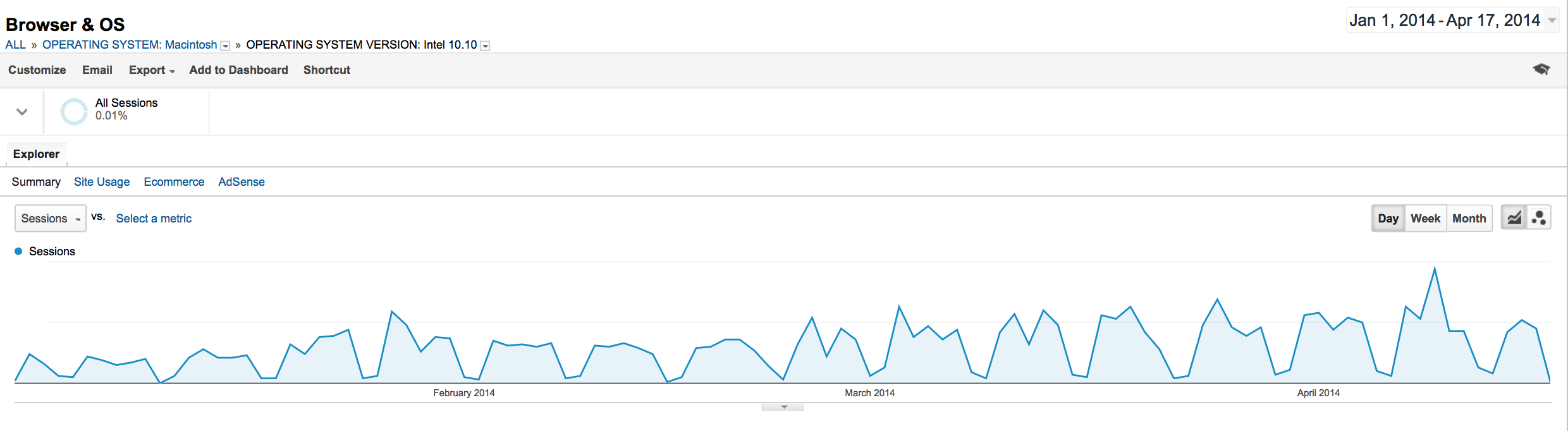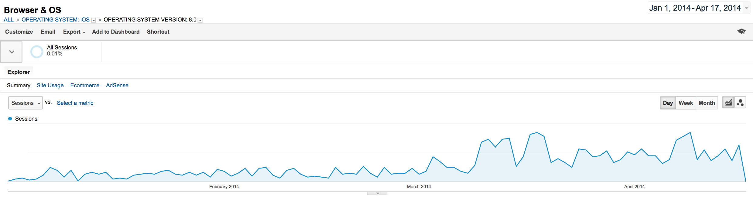 Interessante notare come i web log del sito in questione abbiano registrato un aumento delle visite da dispositivi con iOS 8 ed OS X 10.10, ovviamente con livelli di attività inferiori rispetto a quelli di iOS 7.1.1. Vi ricordiamo che l’aggiornamento di iOS 7.1 è avvenuto soltanto nel mese di marzo con sostanziali modifiche all’interfaccia utente ed introducendo una nuova visione del calendario ed il supporto al CarPlay. Tutte le novità sono state raccolte nella nostra fotogalleria.
