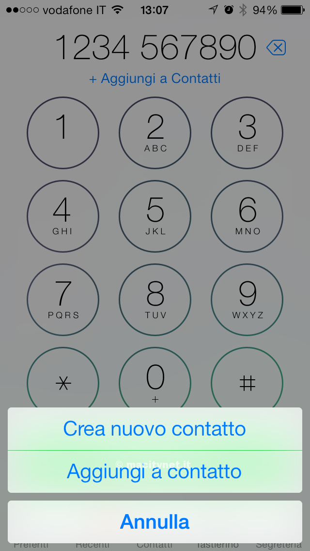La scheda dell’applicazione Telefono dedicata alla composizione dei numeri di telefono ha cambiato leggermente grafica: in particolare, il pulsante per avviare la chiamata è diventato rotondo come i tasti numerici (prima avevamo un lungo pulsante verde rettangolare); inoltre è stato aggiunto il tasto (+) in alto a sinistra, che ci permette di attivare il menù a scomparsa il quale integra le opzioni per aggiungere il numero digitato ad un contatto già esistente o per crearne uno nuovo.