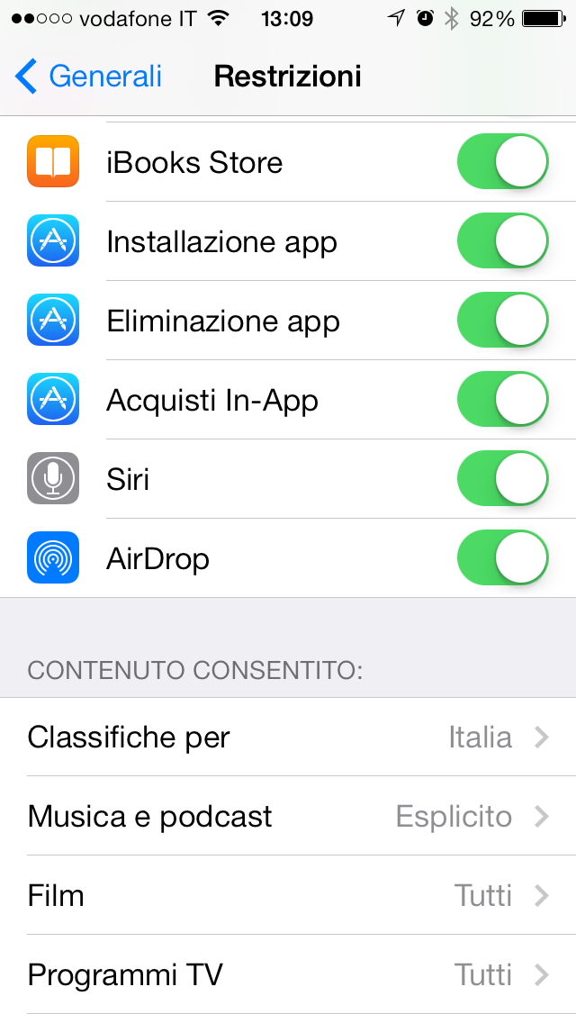 La nuova funzione introdotta con iOS 7.1 ora può essere attivata e disattivata a piacimento attraverso l’interruttore presente in Impostazioni > Generali > Restrizioni.