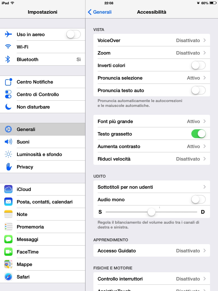 La chiave di volta della maggiore leggibilità sta nell’opzione “Accessibilità” del menu impostazioni. Nelle immagini qui sotto vediamo come agisce sulle schermate di Impostazioni prima e dopo l’attivazione che implica un riavvio del dispositivo stesso per diventare efficace.