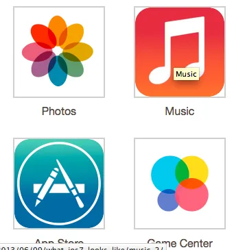 Il sito americano poi cita alcune differenze tra le vecchie e nuove icone: quella per la fotocamera è grigia, la mappa ha cambiato rappresentazione del luogo, quella di Safari è simile a quella del Mac senza il bordo argentato, quella delle foto è una sorta di fiore con petali di differente colore, quella di Game Center è completamente rivoluzionata e simile a quella delle foto. Da segnalare infine che non ci sono più le tacche del segnale, sostituite da cinque puntini bianchi o grigi a rappresentare la potenza del segnale.