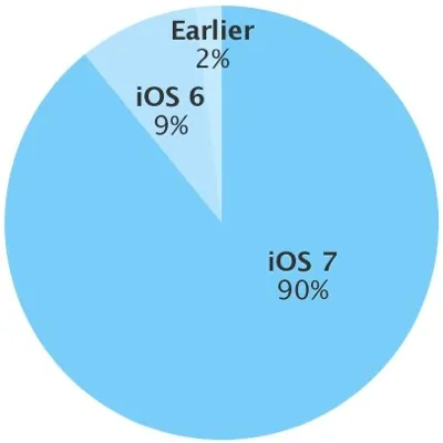Il rilascio di iOS 8, atteso entro il prossimo autunno, è sempre più vicino, ma nel frattempo Apple registra numeri record di iOS 7, presente sul 90% dei dispositivi.