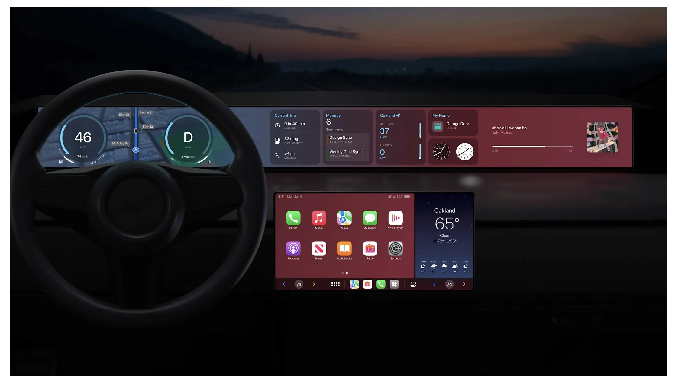 • La prossima generazione di CarPlay avrà la possibilità di apparire sul display digitale dell’automobile integrandosi con le informazioni che derivano dal sistema dell’automobile. I costruttori (da fine 2023) saranno in grado di adattare le informazioni di CarPlay agli schermi di ogni forma e dimensioni dando all’automobilista possibilità di personalizzazione sconosciute ad oggi