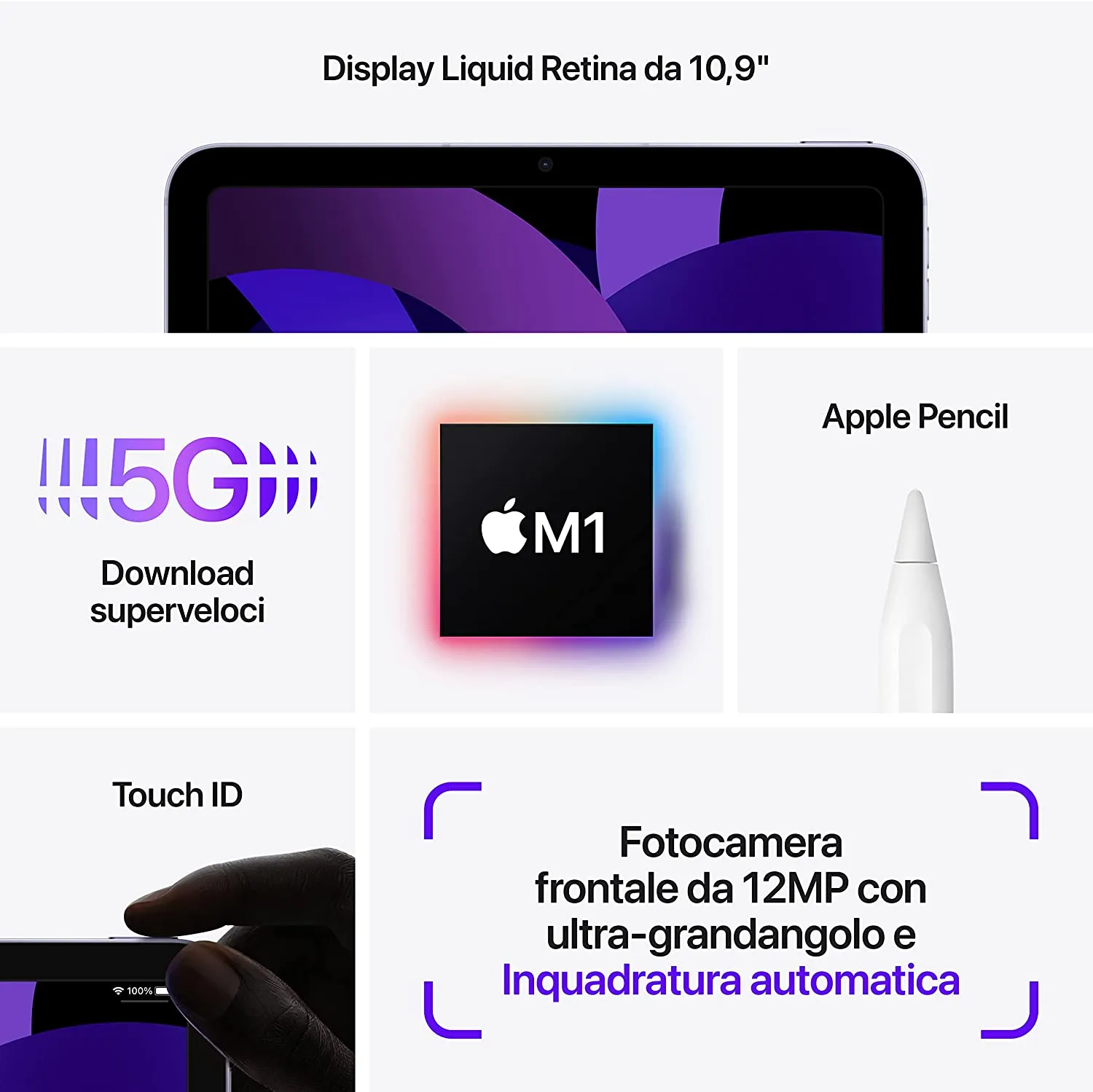 Come già accennato l’unica vera differenza è sul posizionamento della camera frontale, che su iPad 10 trova posto sul lato lungo, mentre su iPad Air di quinta generazione è posizionato sempre sul lato corto in alto.