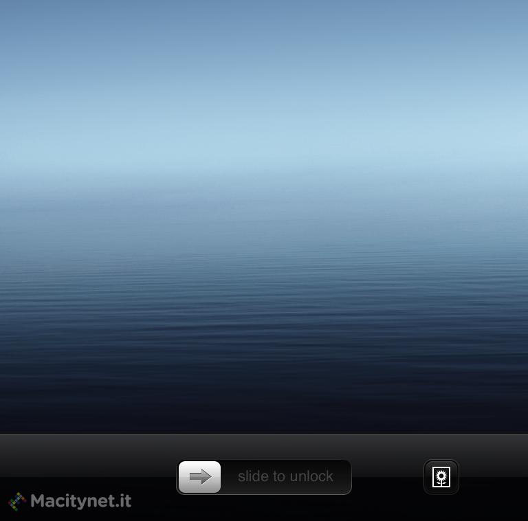 Vista del bottone della galleria e dello slide to unlock a risoluzione nativa su iPad 3. Immaginatela sempre con i lati ridotti della metà.