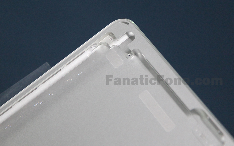Nonostante manchi totalmente la parte frontale, che comunque sarà costituita dal vetro di copertura dello schermo che verrà incollato sul dorso, si notano perfettamente lo spessore ridotto e il profilo simile a quello di iPad mini, con un bordo rastremato ma meno “ripido, di quello dell’iPad tradizionale. Nella parte inferiore si distinguono due altoparlanti, anche qui nello stile dell’iPad mini. Un aspetto altrettanto interessante sono le dimensioni del case che misura 16,8 centimetri di larghezza, quasi due meno dell’attuale modello (18,5 centimetri). Apple ha operato chiaramente sul bordo laterale del case; tra bordo esterno e cornice del display ci sono infatti solo tre millimetri. L’effetto sarà quello di un iPad quasi privo di bordo sui due lati lunghi. Nella parte superiore e inferiore Apple (quindi in lunghezza che resta identica 24 centimetri contro 24,1 delliPad 4) non ha potuto lavorare molto visto che in alto e in basso troviamo componenti come la videocamera, la componentistica di accensione e il tasto home.