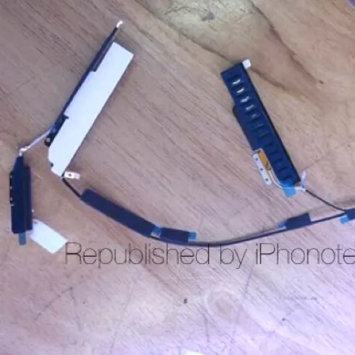 Nelle immagini che riportiamo in calce in questo articolo è possibile osservare un lungo cavo con tre appendici collegate: questo elemento potrebbe essere il sistema di comunicazioni wireless integrato in iPad Air 2. La lunga parte centrale sembra essere l’antenna Wi-Fi mentre l’elemento più piccolo a sinistra sembra l’antenna GPS. Quest’ultima insieme a una piattina forse destinata al microfono, in cui appare il logo Apple, appaiono anche singolarmente nelle foto più in basso. Ricordiamo che nelle scorse ore è circolata l’anticipazione del possibile raddoppio della RAM da 1 GB a 2 GB sempre per il nuovo iPad Air 2.
