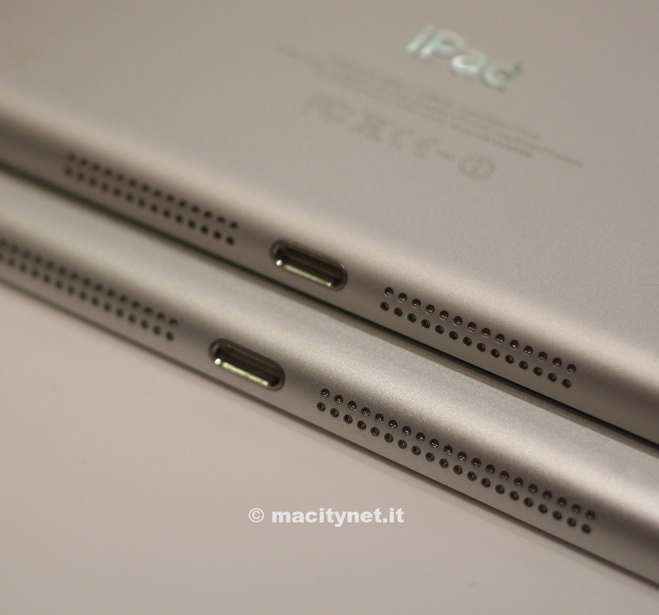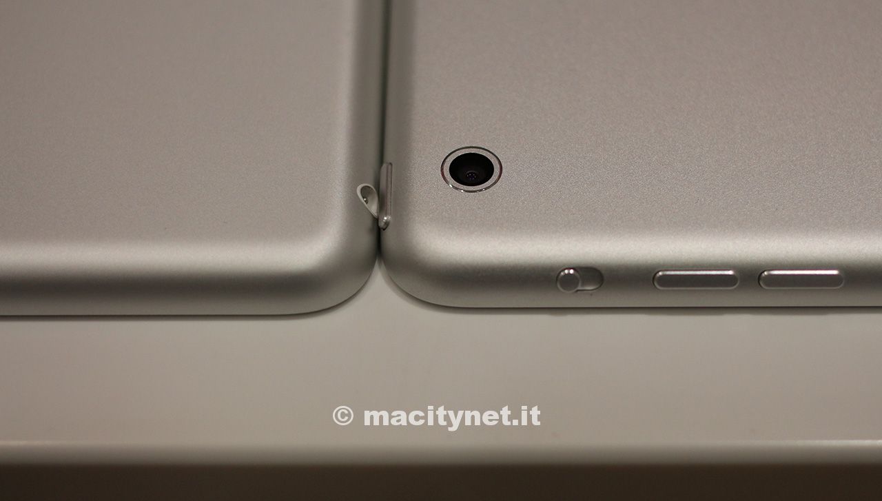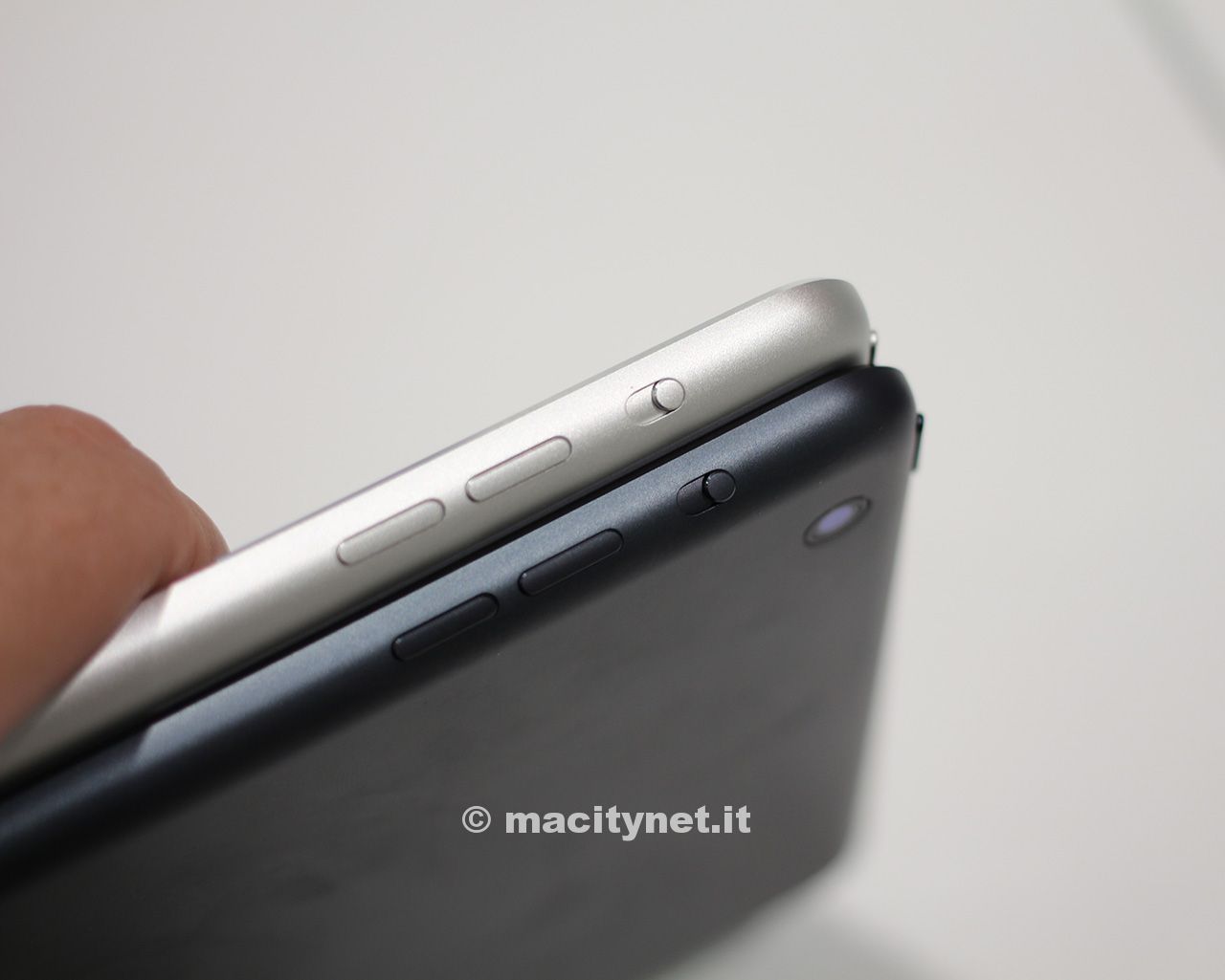 A confronto il fianco dei due modelli: i controlli sono gli stessi (iPad mini in nero)