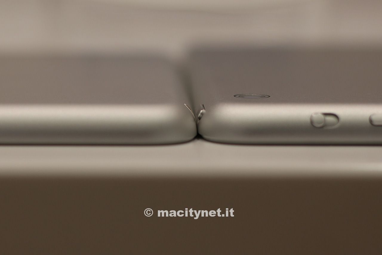 Ancora una vista di fianco per valutare i 0,3 mm di spessore differenza (iPad Air a destra)