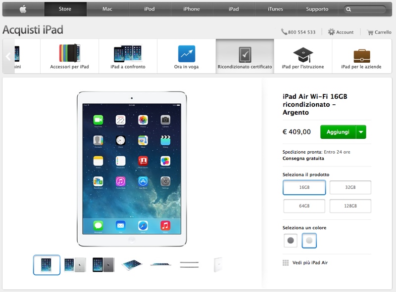 Tutti gli iPad Air ricondizionati su Apple Store online sono disponibile da questa pagina di Apple Store online.