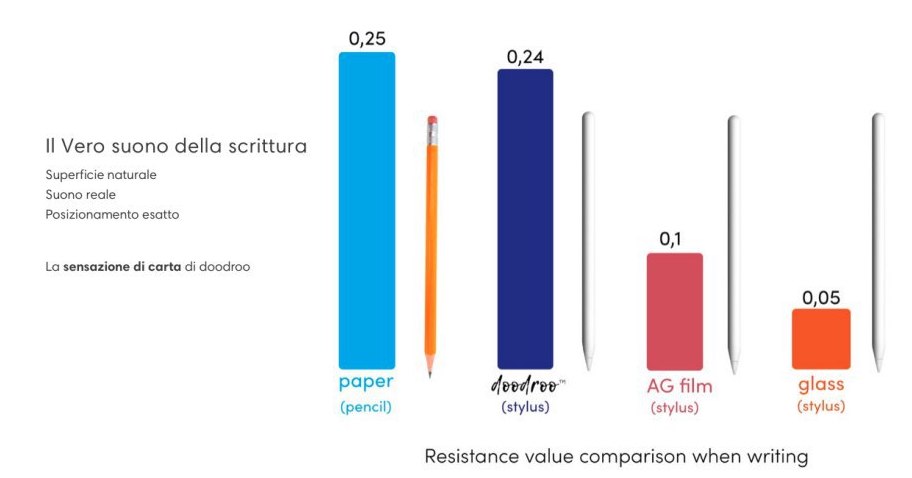 Con le pellicole doodroo iPad ed Apple Pencil diventano carta e matitaLa speciale pellicola, creata da doodroo, riesce ad offrire (in base a test di laboratorio) alla Apple Pencil su iPad una resistenza pari al 94% di quella che viene data dalla matita sulla carta, ricreando praticamente il modo naturale per disegnare o scrivere.