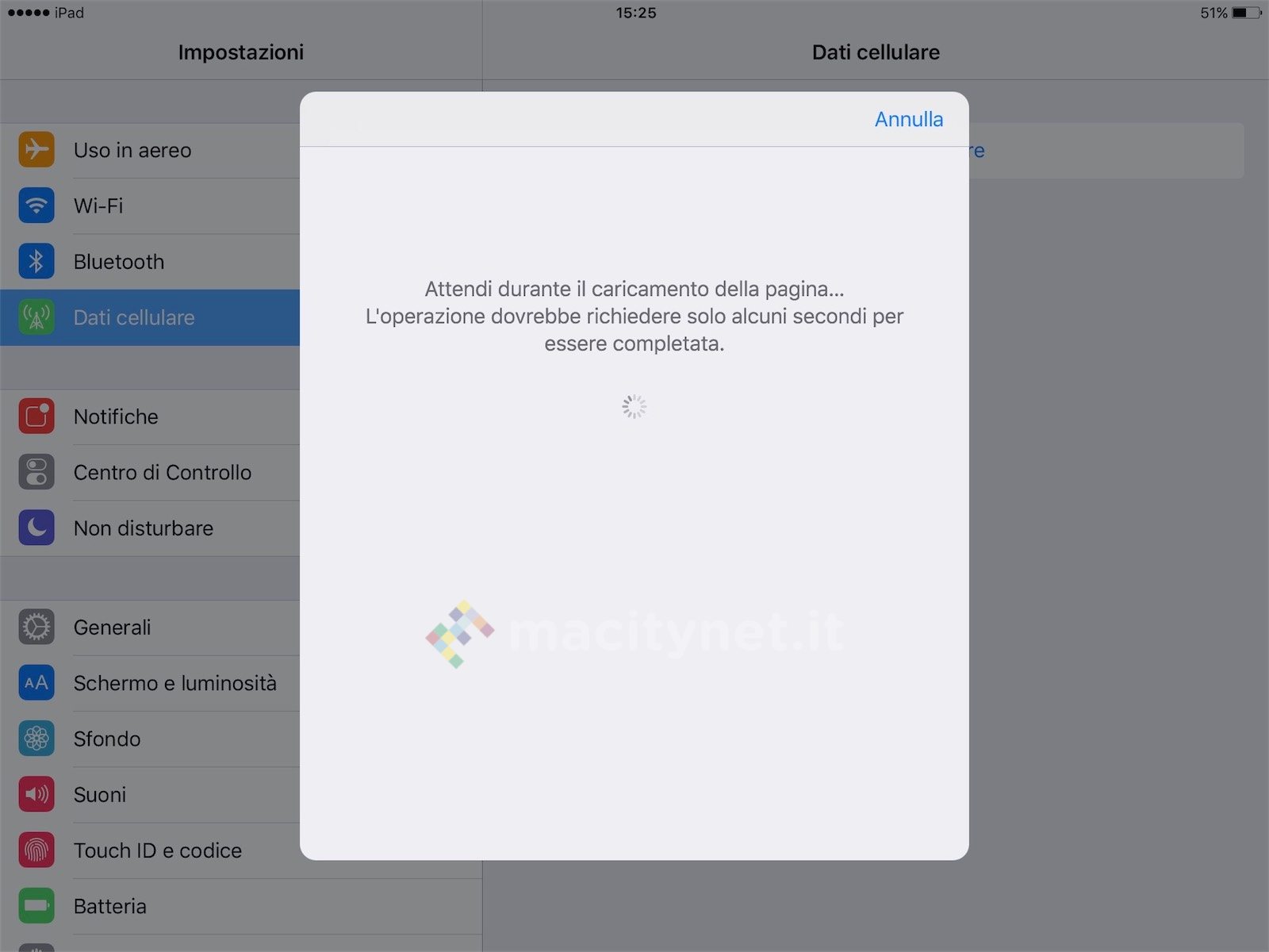 Il funzionameto è molto semplice anche se nel nostro caso ai primi tentativi il menu Dati Cellulare ha restituito esito negativo con un messaggio di mancato collegamento ai server.