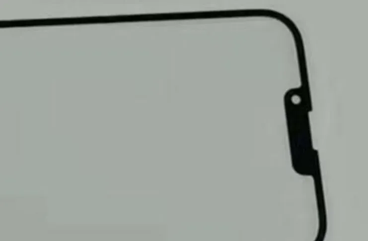 La foto ritrae non il pannello display, ma il vetro superiore di protezione che include il bordo in plastica. Nella parte superiore il notch più piccolo è ottenuto spostando in alto nella cornice lo speaker, mentre il foro della fotocamera frontale, finora collocato a destra, risulta invece riposizionato sulla sinistra.