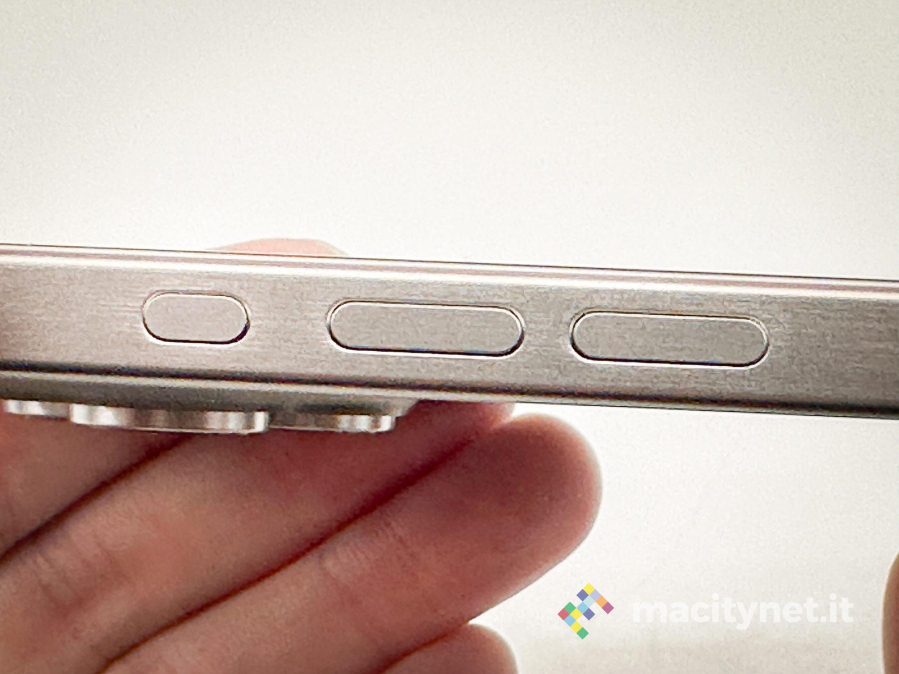 La qualità dei nuovi materiali, nella tradizione Apple, è indiscutibile. Il titanio meno freddo al tatto dell’acciaio degli iPhone 14 è piacevolmente satinato. I bordi continuano a prendere le impronte ma meno spiccatamente dei modelli precedenti. In pratica il metallo perde di lucidità senza mostrare lo stampo dei polpastrelli.