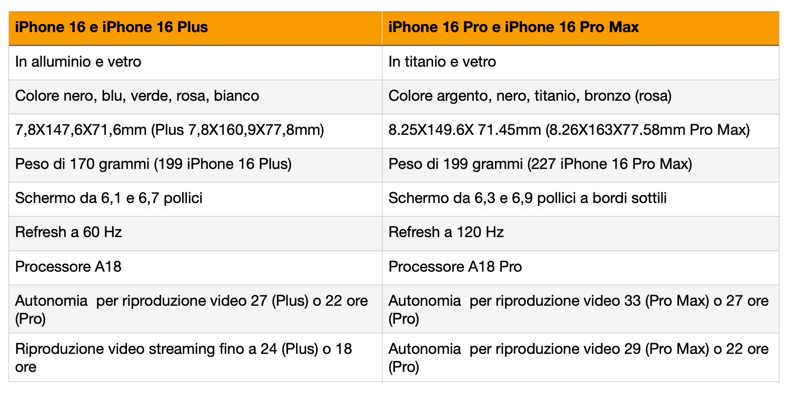 Non può mancare una postilla sulla scelta tra piccolo, iPhone 16 o iPhone 16 Plus oppure grande, iPhone 16 Pro e iPhone 16 Pro Max.